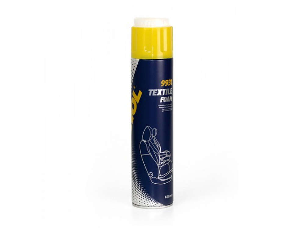 MANNOL Textile Foam – высокоэффективное средство для удаления разнообразных загрязнений и пятен с обивки мебели, салона автомобиля, ковровых покрытий, тканей и т.д. Возвращает естественный цвет, восстанавливает первоначальный внешний вид тканей и ковровых материалов, поднимает ворс, устраняет неприятные запахи и освежает воздух в салоне автомобиля. Этот продукт предупреждает повторное загрязнение благодаря антистатическим свойствам.