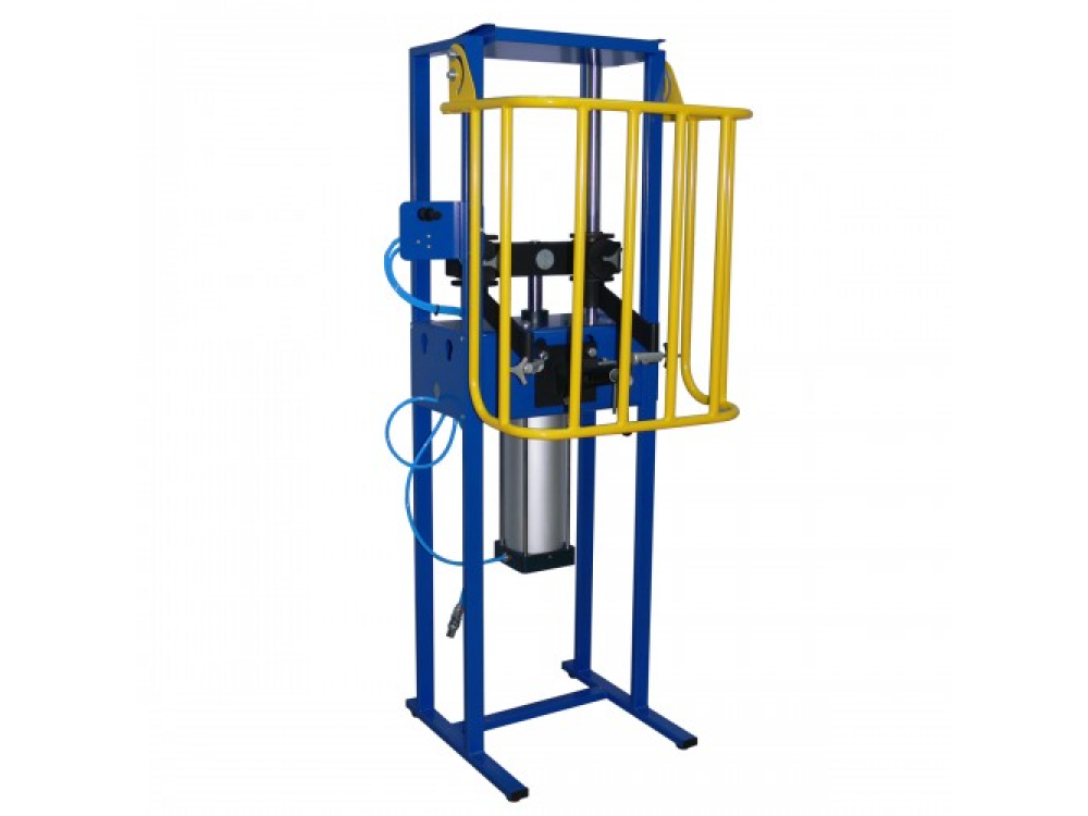 Стяжка пружин пневматическая для стоек амортизаторов Оборудование представляет собой стяжку пружин c пневматическим приводом. Стяжка пружин используется для замены стоек подвески макферсон. Подвеска системы макферсон, она же подвеска Мак-Ферсона (в переводе с английского MacPherson suspension) или подвеска на направляющих стойках, «качающаяся свеча» — тип подвески автомобилей, одним из основных элементов которой является стойка амортизаторная. Особенности пневматической стяжки пружин - Длинный ход верхних упоров до 350 мм позволяет использовать оборудование для обслуживания длинноходных амортизаторов - Все узлы пневматической стяжки имеют покрытие, что предотвращает появление коррозии и окисление ее составных частей - Держатели пружин - зажимы обеспечивают быстрый монтаж и демонтаж пружины амортизатора - Стяжка пружин амортизатора оснащена защитным экраном Стяжка пружин пневматическая : технические характеристики - Размеры: 650x620x1500 мм - Вес пневматической стяжки: 60 кг - Рабочее давление: мин 6 бар, макс 10 бар - Ход штока цилиндра: 350 мм - Сила сжатия: 10 бар = 1200 кг Дополнительные аксеcсуары для пневматической стяжки пружин (приобретаются отдельно) - Нижний упор для пружин с витком ? 78 - ? 130 мм - Нижний упор для пружин с витком ? 125 - ? 205 мм