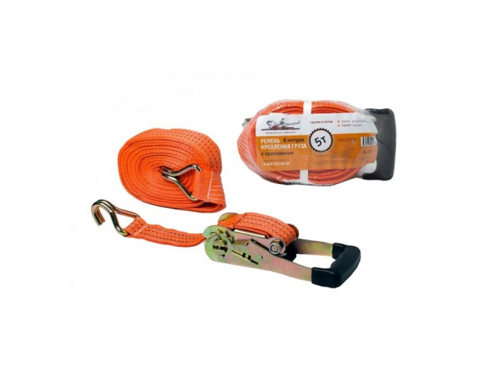 1. Ремень крепления груза с храповиком 5 т. 2. 8 м. в вакуумной целлофановой упаковке с этикеткой – 1 шт.