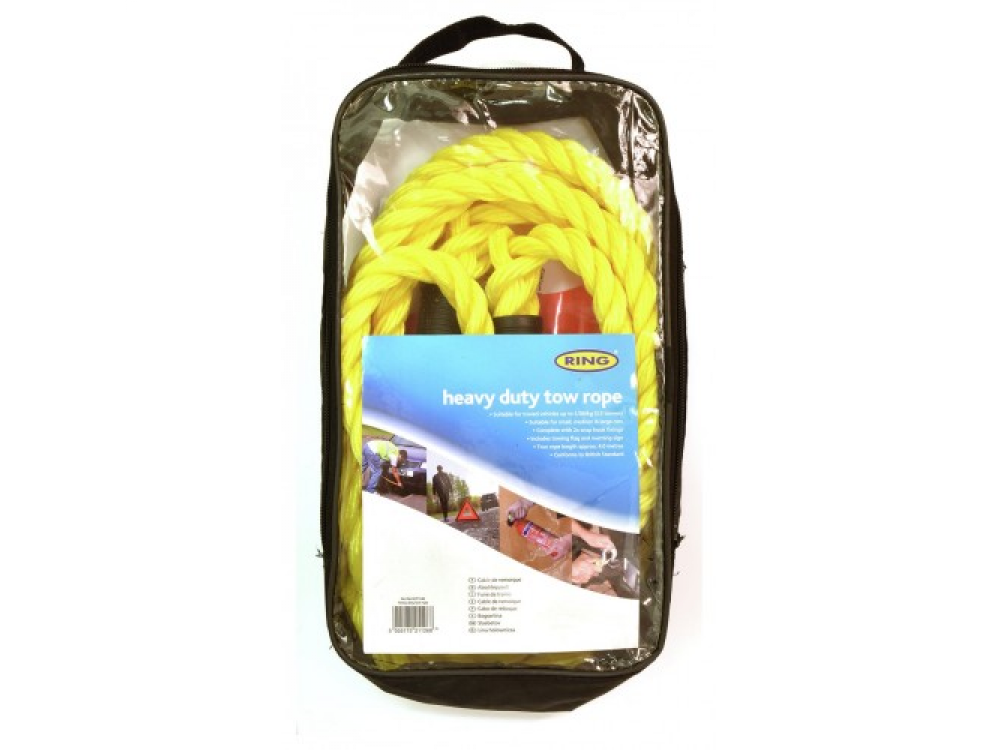 Трос RCT1540, выдерживает вес до 3500 кг подходит для буксировки небольших и средних автомобилей весом до 3500 кг. Поставляется в комплекте с двумя защелкивающимися крюками, буксировочным флагом и предупредительным знаком, чтобы предупредить других участников дорожного движения о том, что автомобиль буксируется. Канат длинной 4 метров.